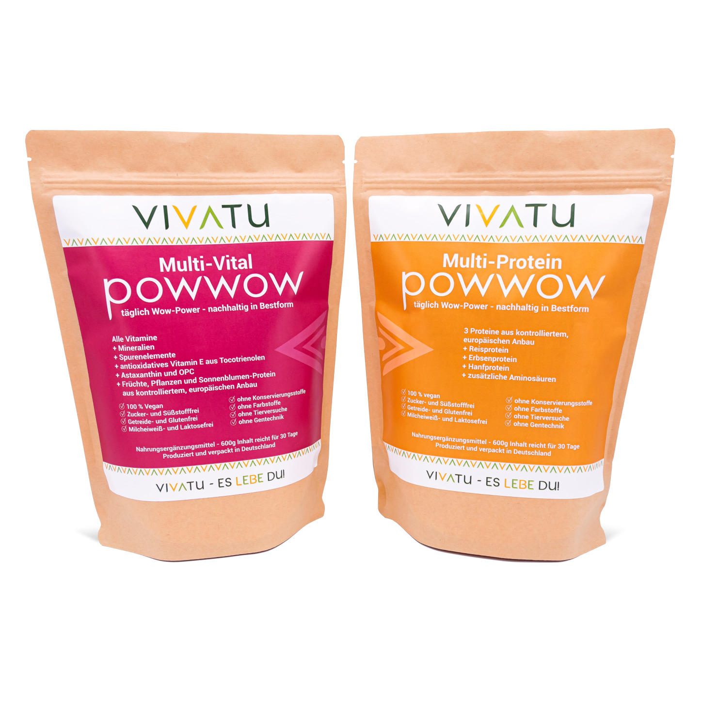 vivatu powwow Vegan Starter ist eine Basis-Nahrungsergänzung für alle, die doppelt profitieren wollen, das Beste für dein Immunsystem und für die Natur mit hochdosierten Mikronährstoffen im Doppelpack: Vitamine, Mineralstoffe und Spurenelemente, eingebettet in Frucht- und Pflanzenpulver aus kontrolliertem Anbau, dazu naturbelassene Bio-Pflanzenproteine in einer exklusiven Mischung aus europäischem Bioanbau. Diese vier Bio-Proteine stellen vor allem in dieser Mischung eine gute Versorgung mit essentiellen Aminosäuren dar.